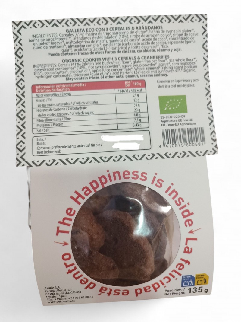 - Cookies de 3 Cereales & Arándanos Eco Orgánico