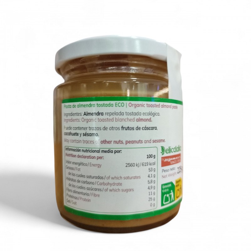 Valores nutricionales de esta Pasta de Almendra Tostada Ecológica BIO sin Gluten.