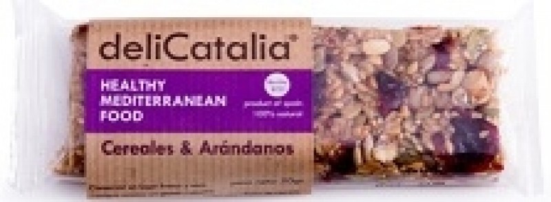 Ingredientes de la barrita ecologica de cereales y arándanos de DeliCatalia de 50gr:
