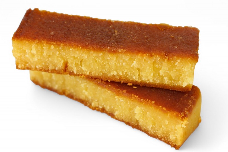 This turron is one of the best selling and most popular, especially in the Levante area. During the production process, the yolk nougat is taken without toasting, covered with sugar and a burning plate is passed until the sugar get toasted and it picks up its color.