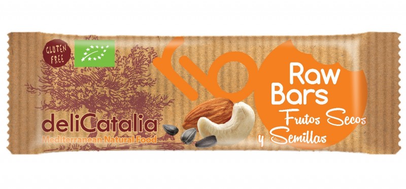 Ingredientes de la barrita ecologica Raw de frutos secos y semillas de 30g: